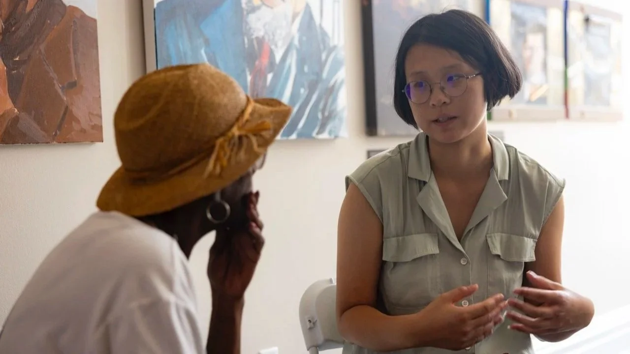 JACS Student, Cindy Gao, speaking with Loretta Smith at the August Wilson House. (Photo by Jay Manning)