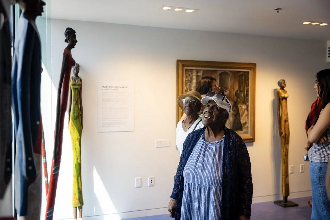 Hill District community members viewing art during a tour of the August Wilson House. (Photo by Jay Manning)